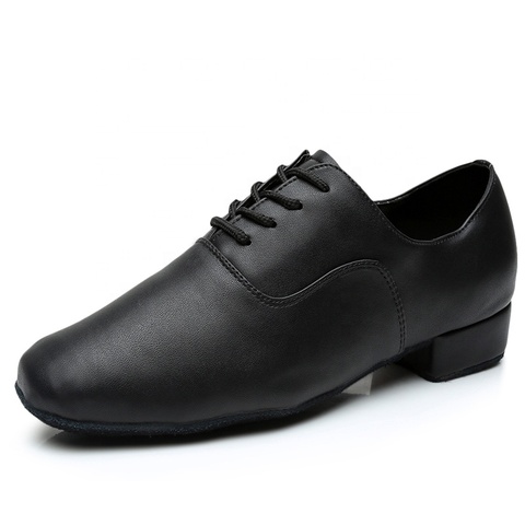 Zapatos de cuero suave para niños, calzado negro para Salsa, salón de baile, Tango